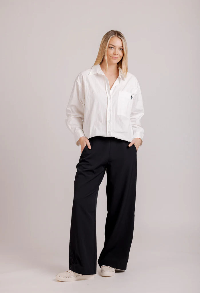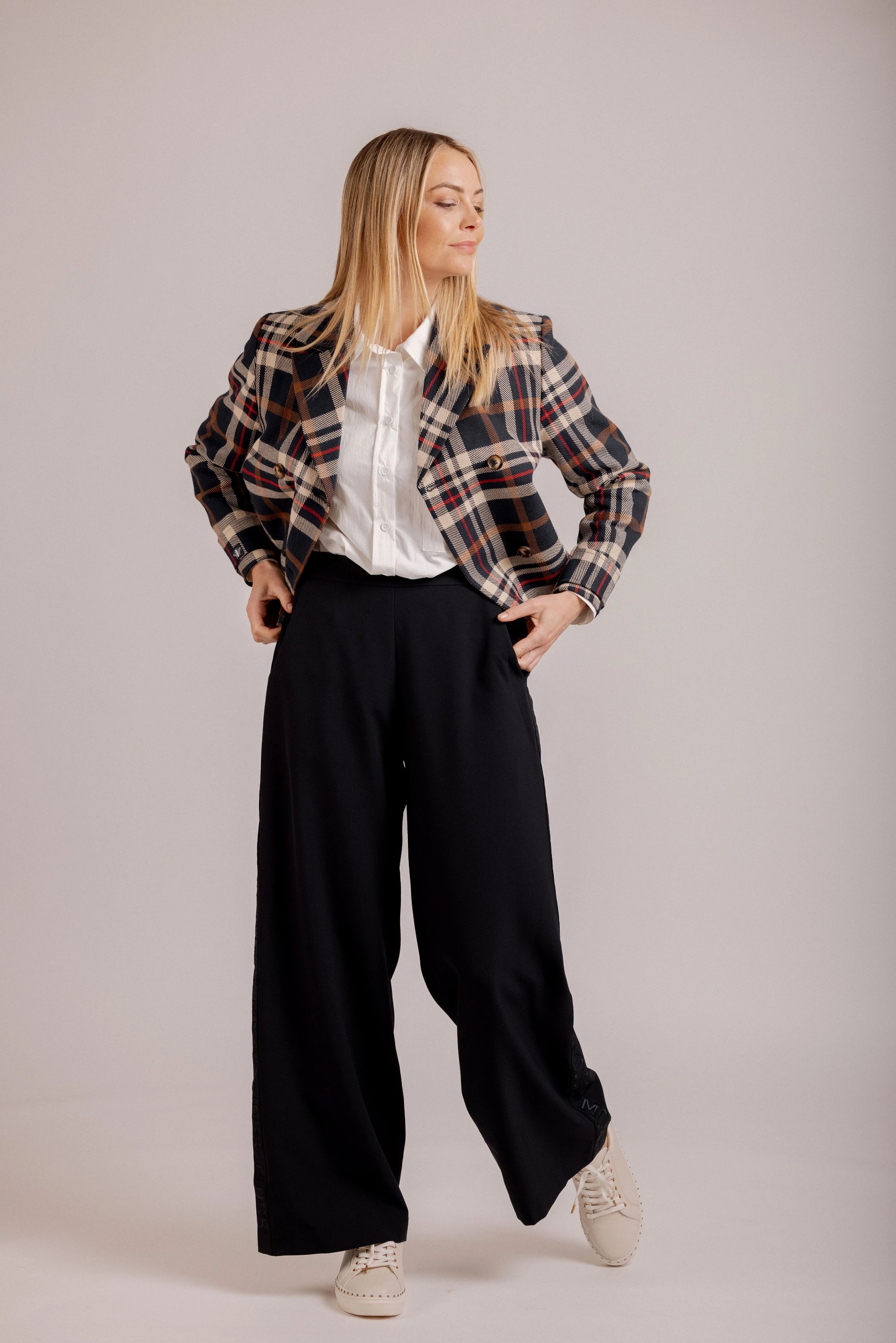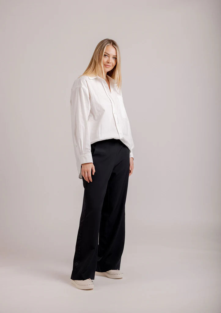 We have changed this to a light tab with navy writing to avoid colour run on the white fabric.