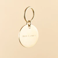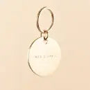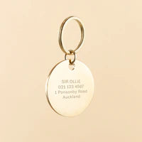 Our dog ID tags are stylish with a minimalist design. Ensure your pup can be returned home if they go walk-about. Made from solid brass with a glossy gold coating.