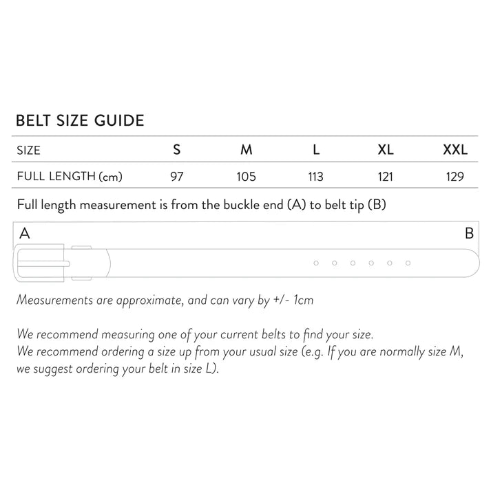 Strip cut from a single hide, each belt incorporates five strands woven together by hand. The braid is then closed with matching leather ends and attached to our classic antique brass buckle.