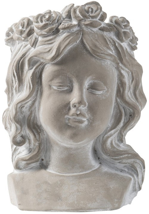 REGAL ELEGANCE HAS NEVER LOOKED BETTER, AND THIS CLASSIC BUST WALL PLANTER BOASTS OLD-WORLD CHARM. COMPLETE WITH A WHITEWASH STONE FINISH, THIS HEAD PLANTER IS DETAILED WITH A FLORAL WREATH AND IS WALL MOUNTABLE. IT LOOKS AMAZING WITH TRAILING PLANTS TO ELEVATE THE LUSH FOLIAGE OF THE GARDEN.