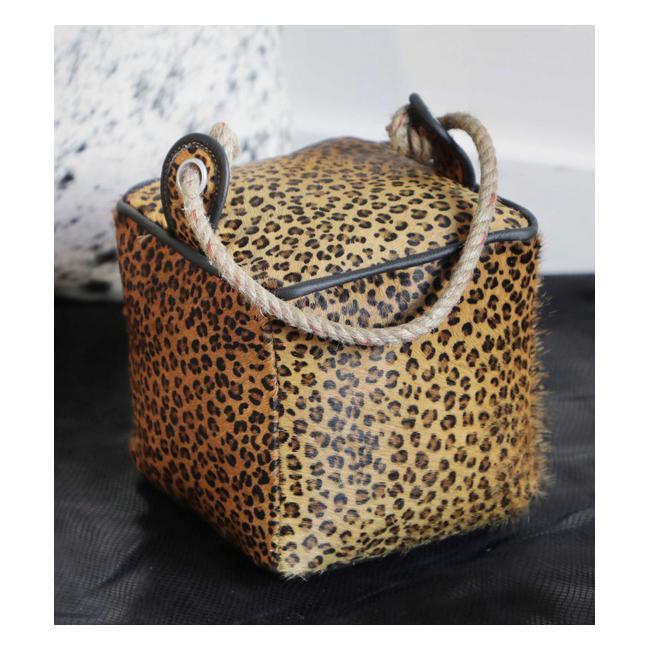 A daring addition to any doorway, this Leopard Leather Door Stopper is made of luxurious cowhide and designed to protect your doors from scratches or marks. Make a bold statement in style!