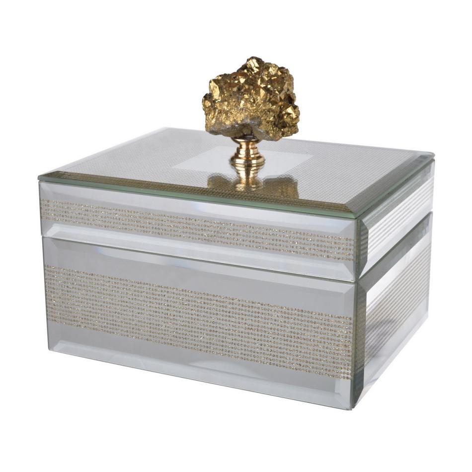 The small-sized glass jewellery box features a delicate, gleaming pattern and bold geode finial for an impressively chic look. Use this glamorous box to safely and conveniently store jewellery, watches, or other small items. With its bright shine, the sullivan box makes a distinctive, modern statement that is perfect for a master bedroom, office, or bathroom.