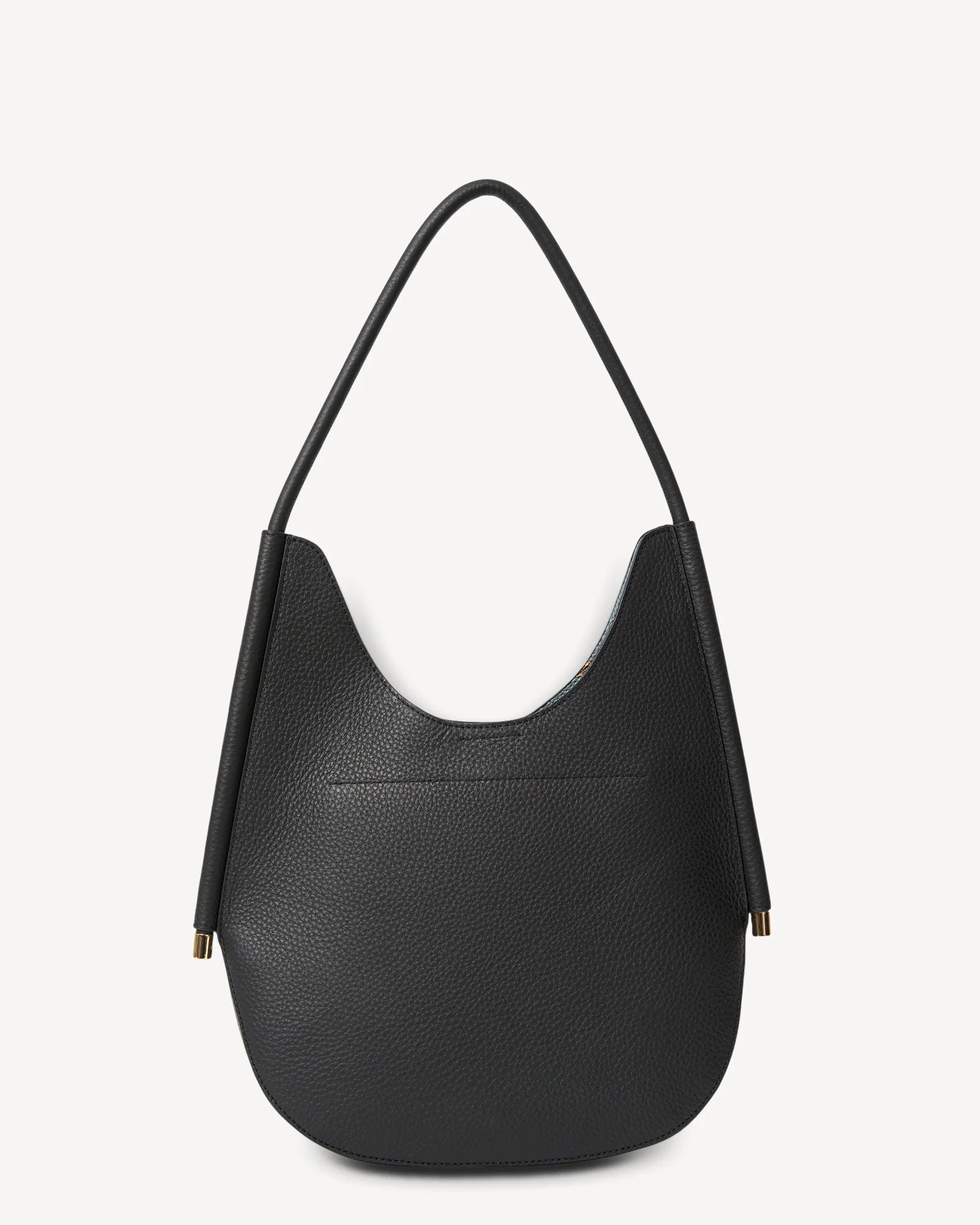 A modern and elegant hobo bag, crafted from natural grain leather, the Asher features a structured piping handle with sleek metal ends. Inside, a snap pocket keeps essentials close at hand. Asher is made with luxe double faced leather, finished with a surprise and delight bronze interior.