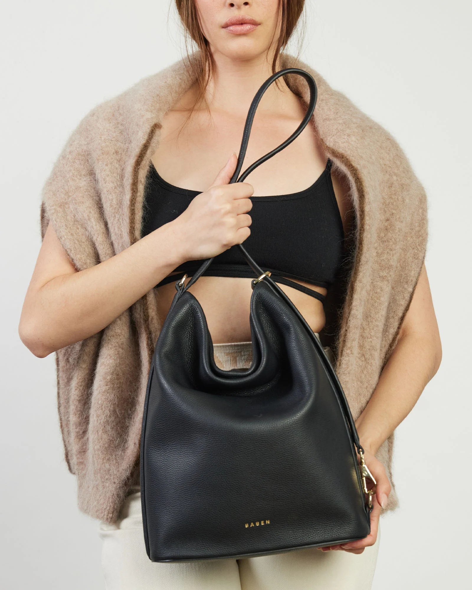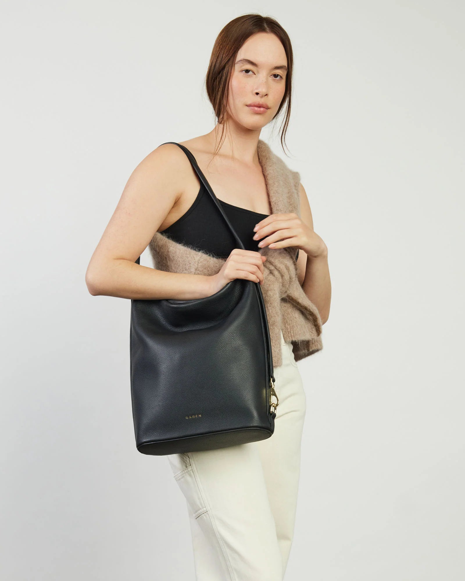 A chic bucket style tote designed for your everyday needs. June’s sleek, adjustable shoulder strap and a secure magnetic closure provides generous space for all your essentials – and then some. Simply unclip the statement SABEN hardware to extend the bag to a set length crossbody.