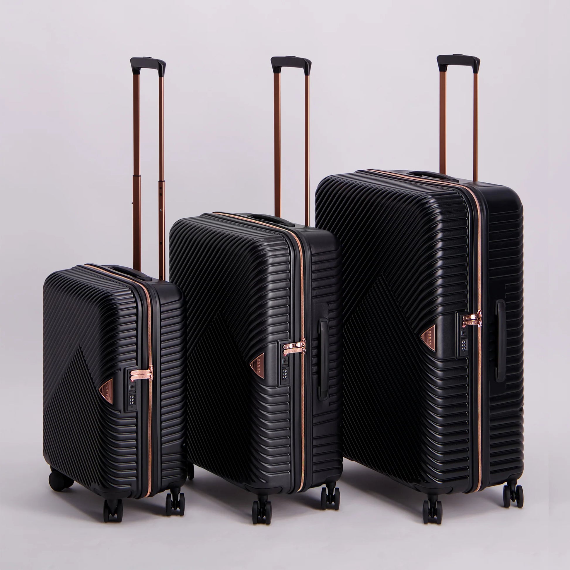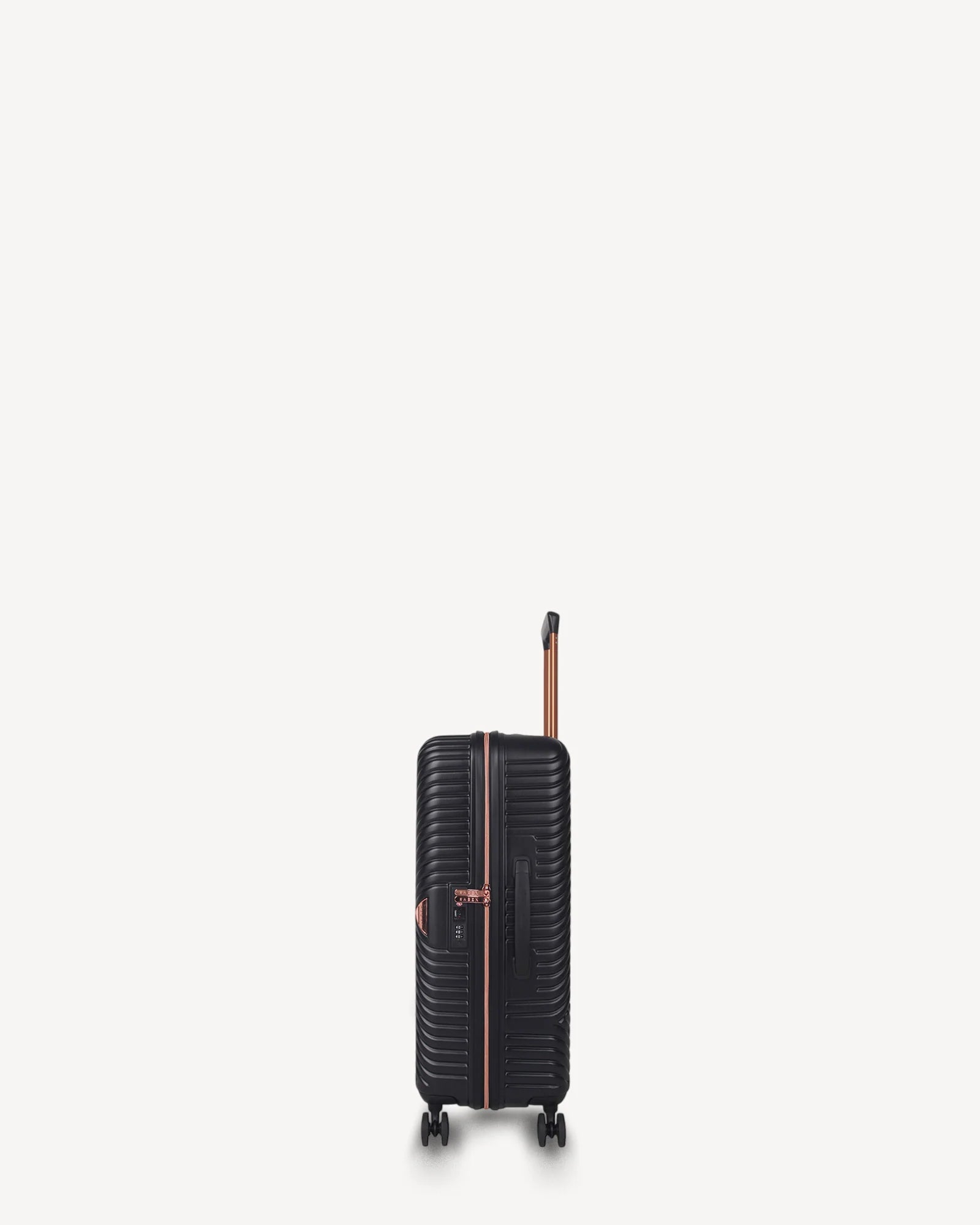 Clever inside and out, meet the perfect carry-on cabin bag to keep your personal belongings tucked and tidy. Made from moulded polycarbonate with metallic rose gold detailing for lightweight and robust construction.