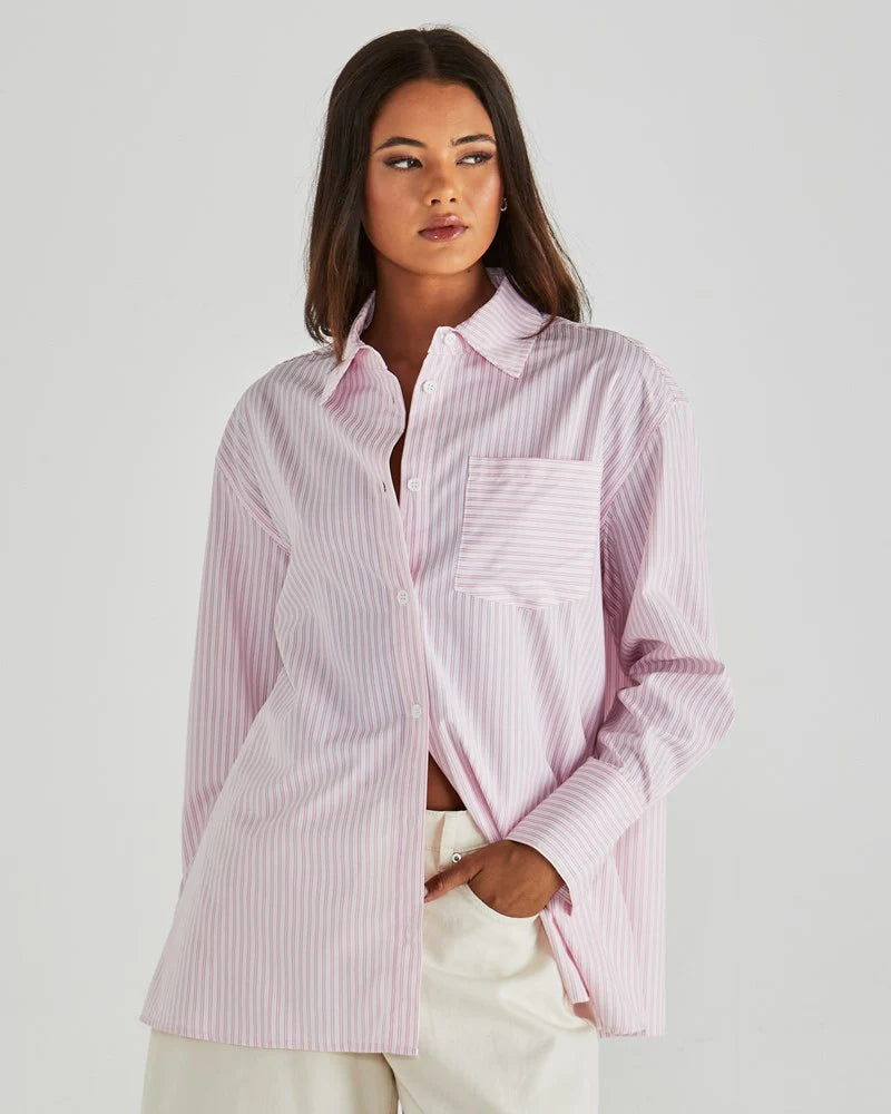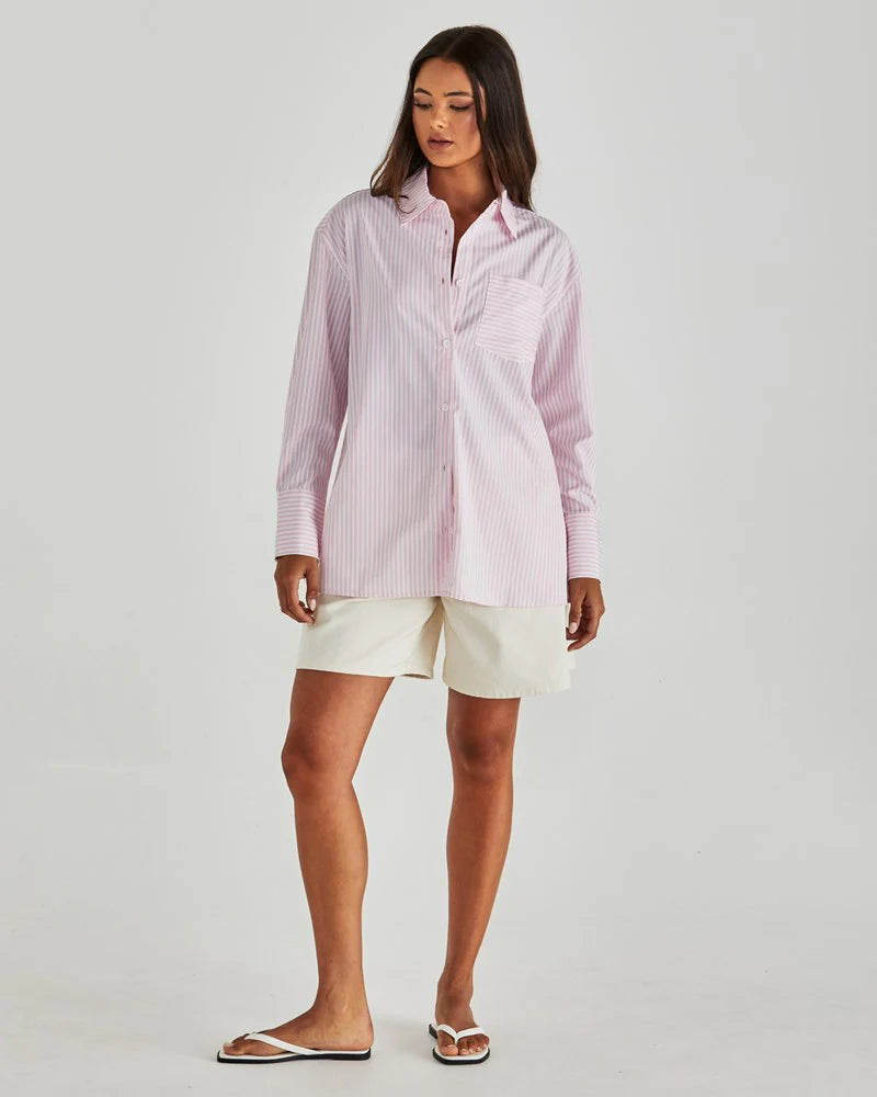 The Ambrose Shirt takes a classic button-up and makes it cool. With an oversized fit, patch pocket, and button details, it’s all about relaxed tailoring. An easy throw-on that’s elevated enough for brunch but chill enough for the weekend.