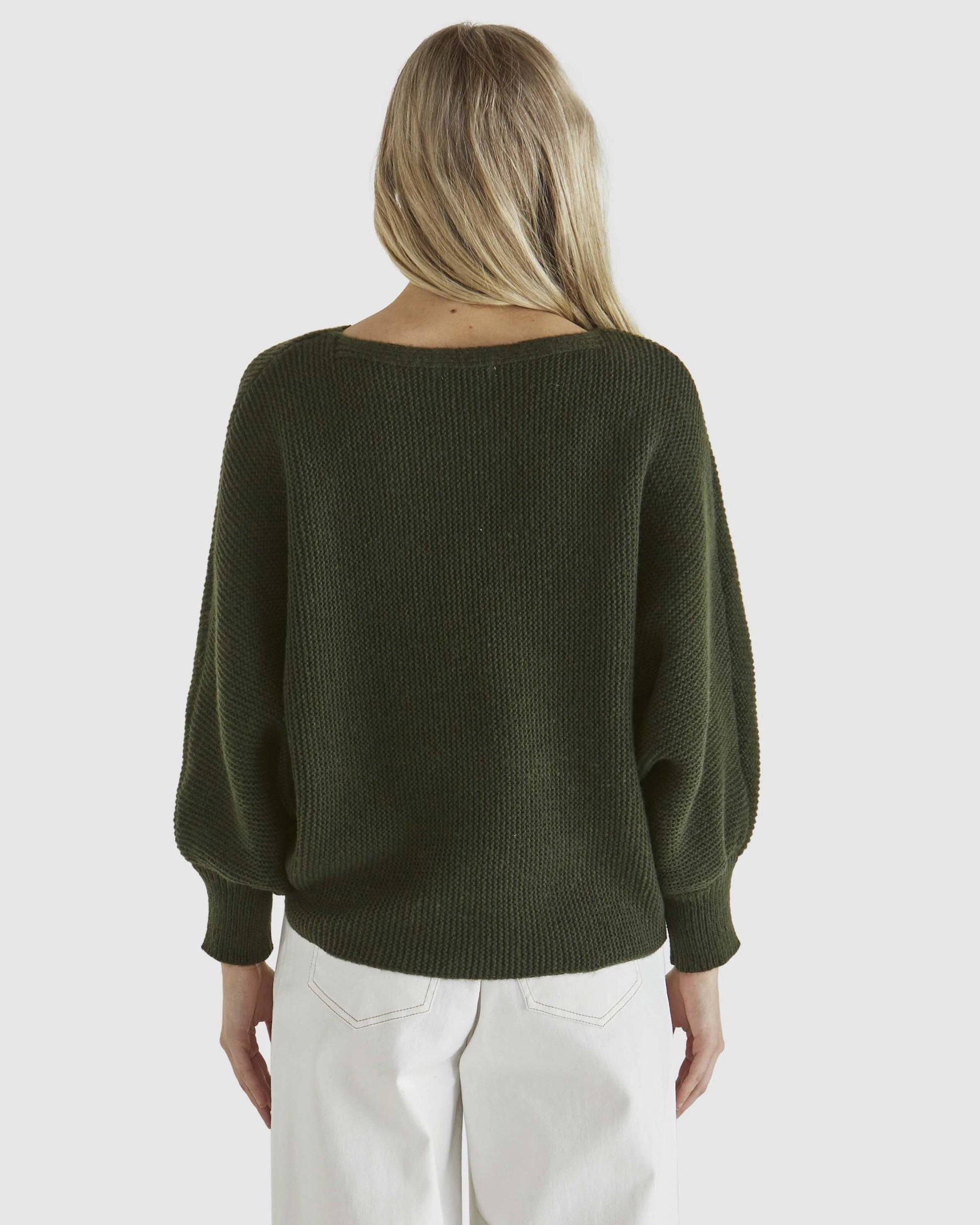 Effortless elegance defines the Concord Knit, featuring a wide neckline, batwing sleeves, and a subtle chain-knit detail. Crafted from soft knit fabric with a relaxed fit, this piece is perfect for layering over camisoles or pairing with tailored trousers for a refined look.