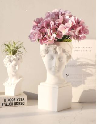 Ancient Greek White Resin Flowerpot Portrait Vase.