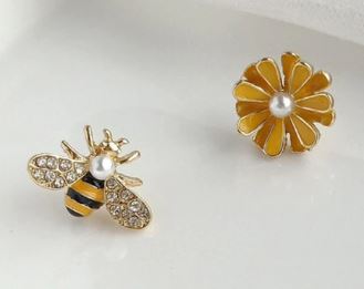Cute as a lil button. These earrings are so sweet with the bee in one ear and the daisy in the other...
