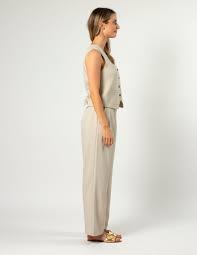 Soft suiting pleat front pant with concealed hook and bar waist closure , elasticated at back waist and side angle pockets.