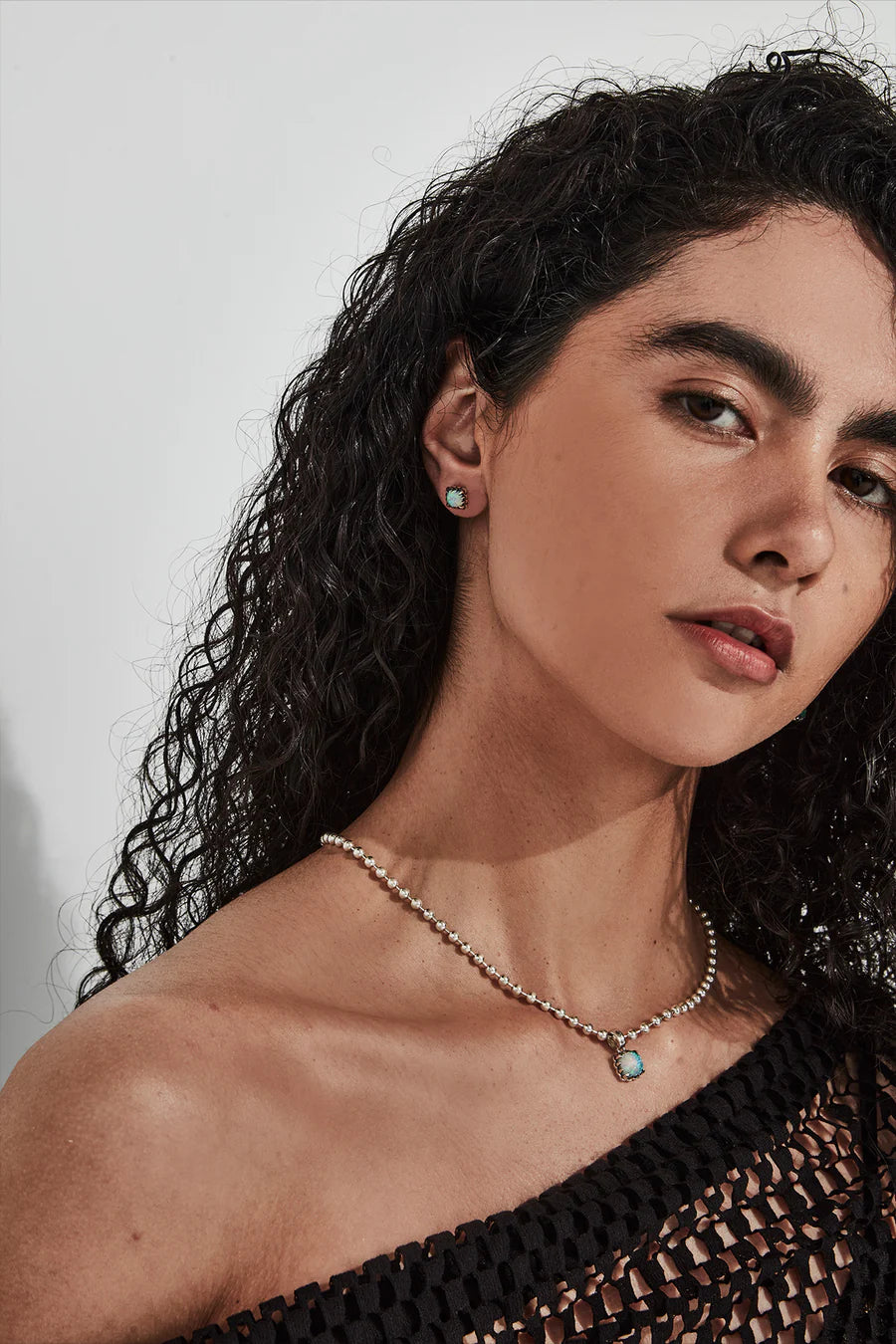The Mini Claw Studs showcase square-cut faceted Bello Opals in our signature claw setting, crafted in sterling silver with dark oxidised details. This pair of stud earrings shimmer with orange, green, and purple flashes for a refined everyday statement.