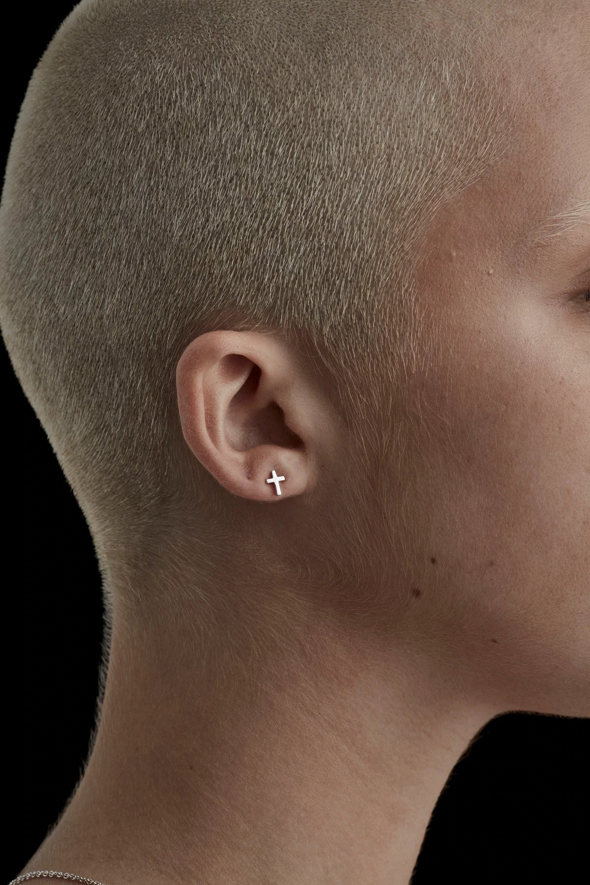 Tiny Stolen Cross Earrings crafted in high polish sterling silver