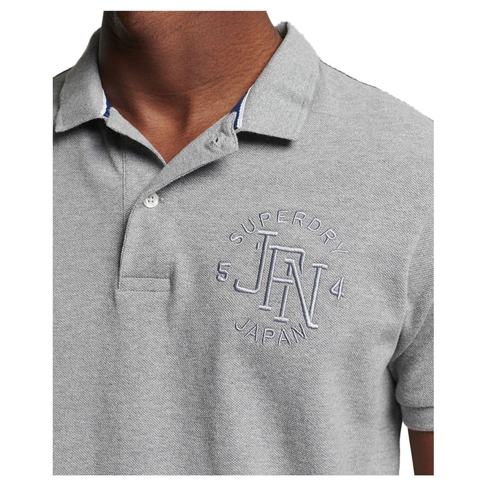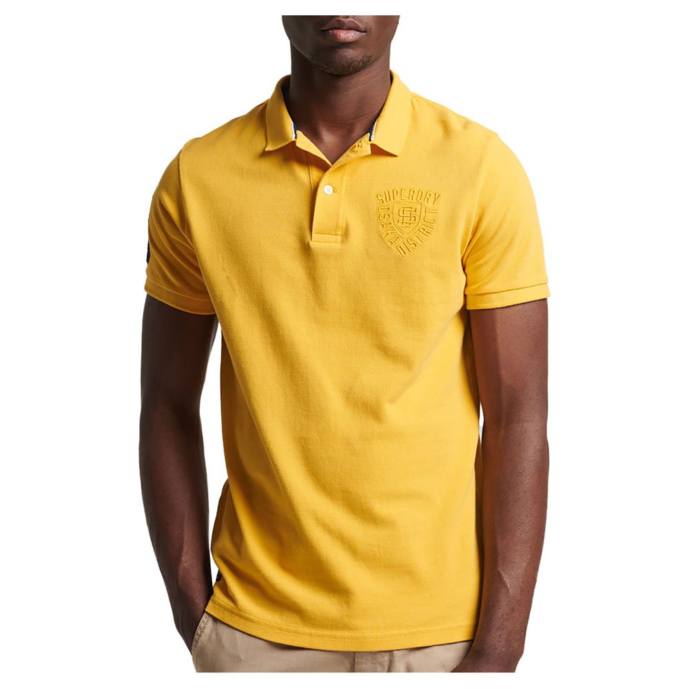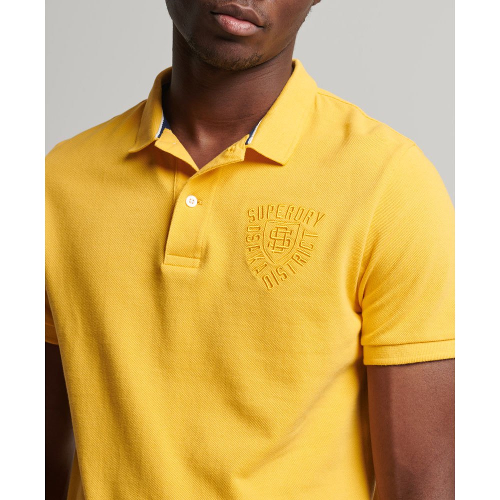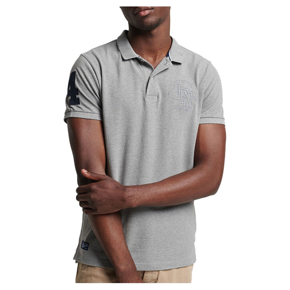 Go for your normal size, Organic cotton, Half-button fastening, Short sleeves, Embroidered athletics-style graphics, Superdry tab.