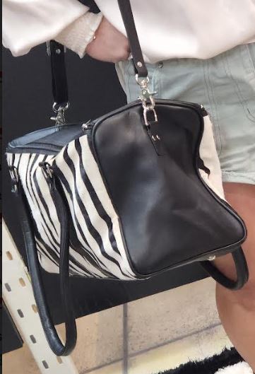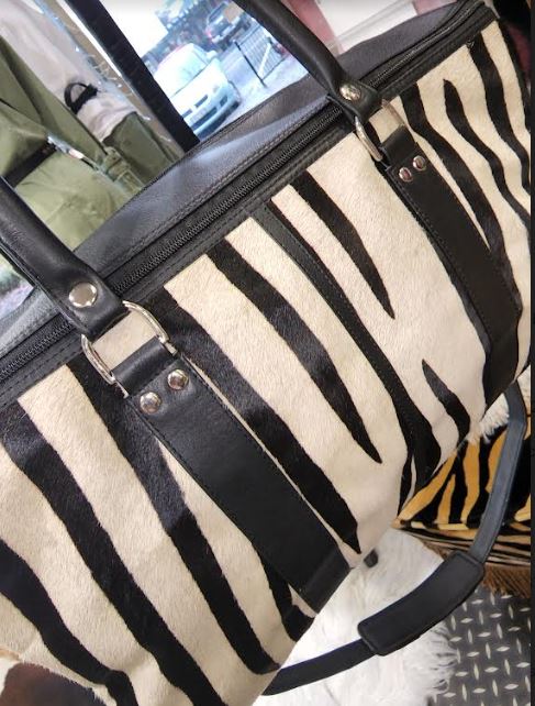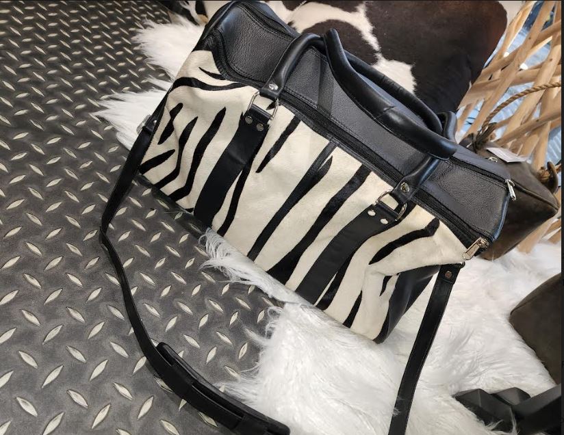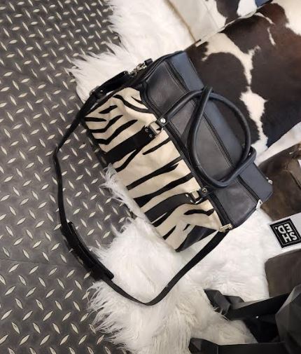 The Design Edge Europe Overnight Bag in Zebra Print and Black Leather