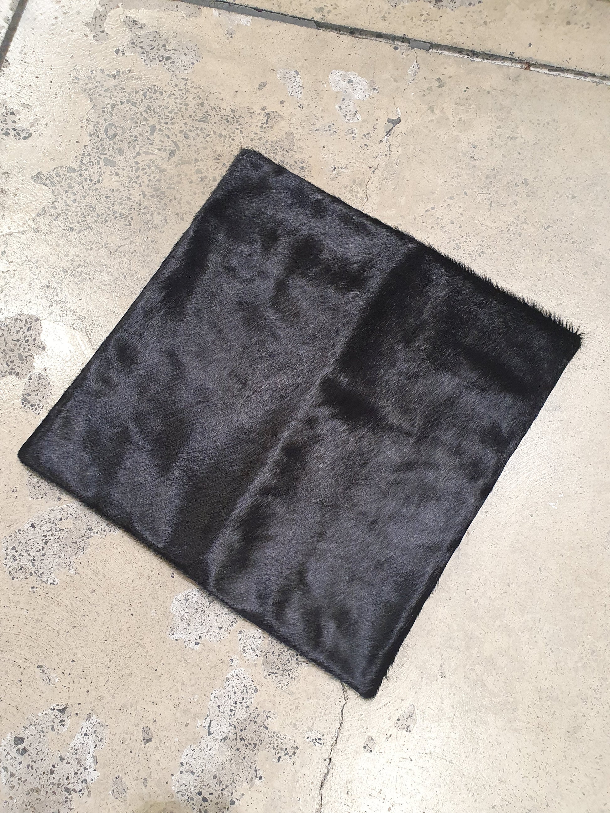 Each cowhide cushion is unique – patterns, colors and sizes vary slightly and are sold on this basis. Natural cowhide front with suede-like fabric backing. Filler not included. Hypoallergenic. Warm water and soap spot clean. Allow to dry naturally . No cleaners or chemicals to be used.