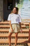 The Edna Short features a blind hem for a seamless look, belt loops and a removable tie. The zipper opening ensures ease of wear, while box pleats at the waist create a flattering silhouette. Thanks for being awesome, Edna!