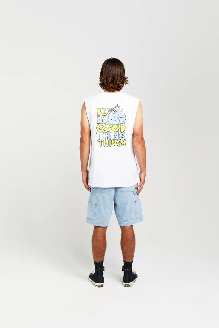 Crafted from 100% Cotton t-shirting, it features our "Do Good Things" print This tank lets you express a positive message in a clean and classic style.