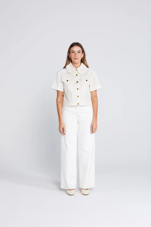 The Zephrya Top is a short-sleeve, denim-inspired design with a rounded collar and front patch pockets. Wear it closed for a chic look or open for a more laid-back vibe. You can even match it back with the Everyday Shorts if you want.
